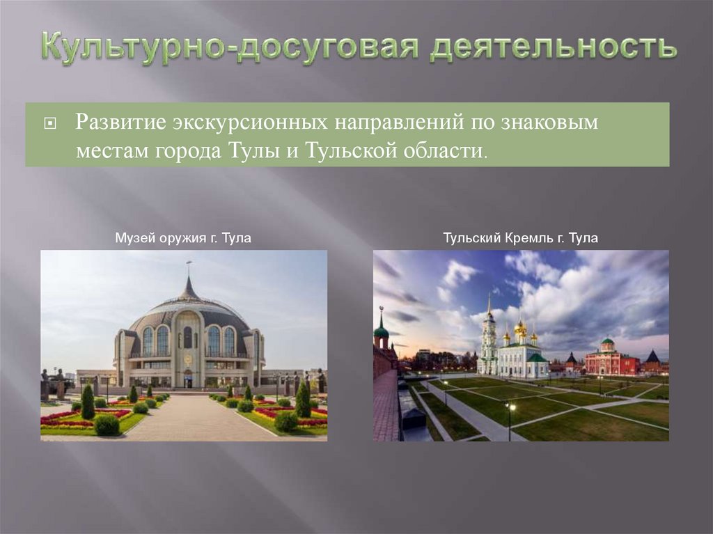 Развитие экскурсионных направлений по знаковымместам города Тулы и Тульской области.