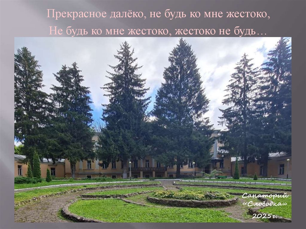 Прекрасное далёко, не будь ко мне жестоко,Не будь ко мне жестоко, жестоко не будь…