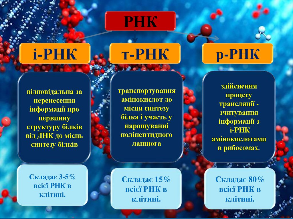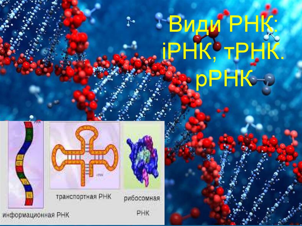 Види РНК:іРНК, тРНК.