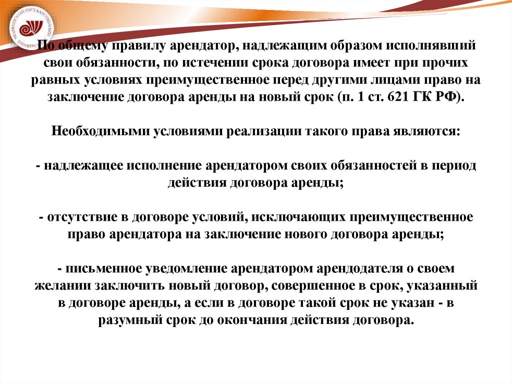 дальнейшее продление аренды.По общему правилу, договор аренды заключается на срок,