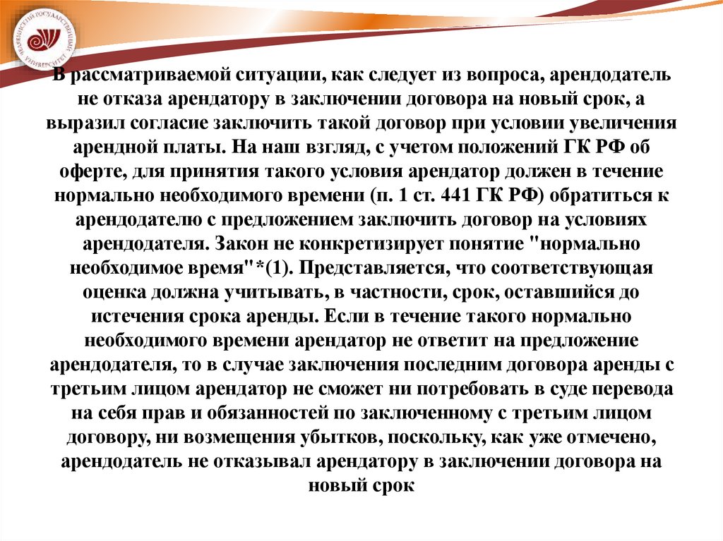 взаимоотношениях между арендатором иарендодателем случаются и другие ситуации, связанные с