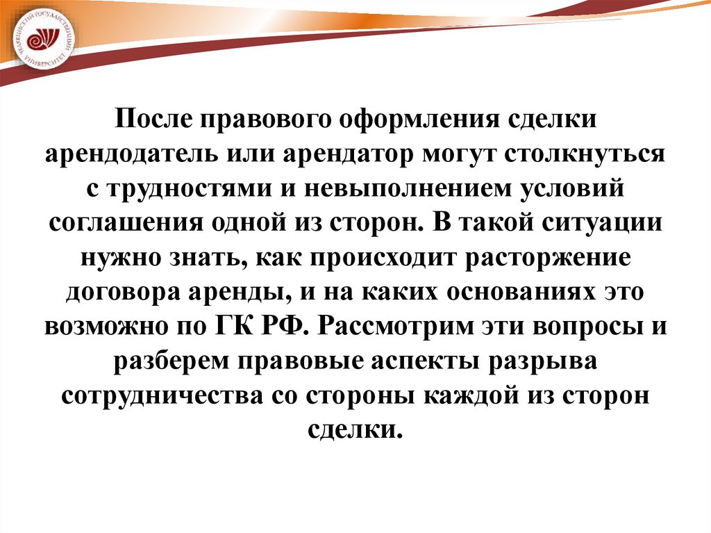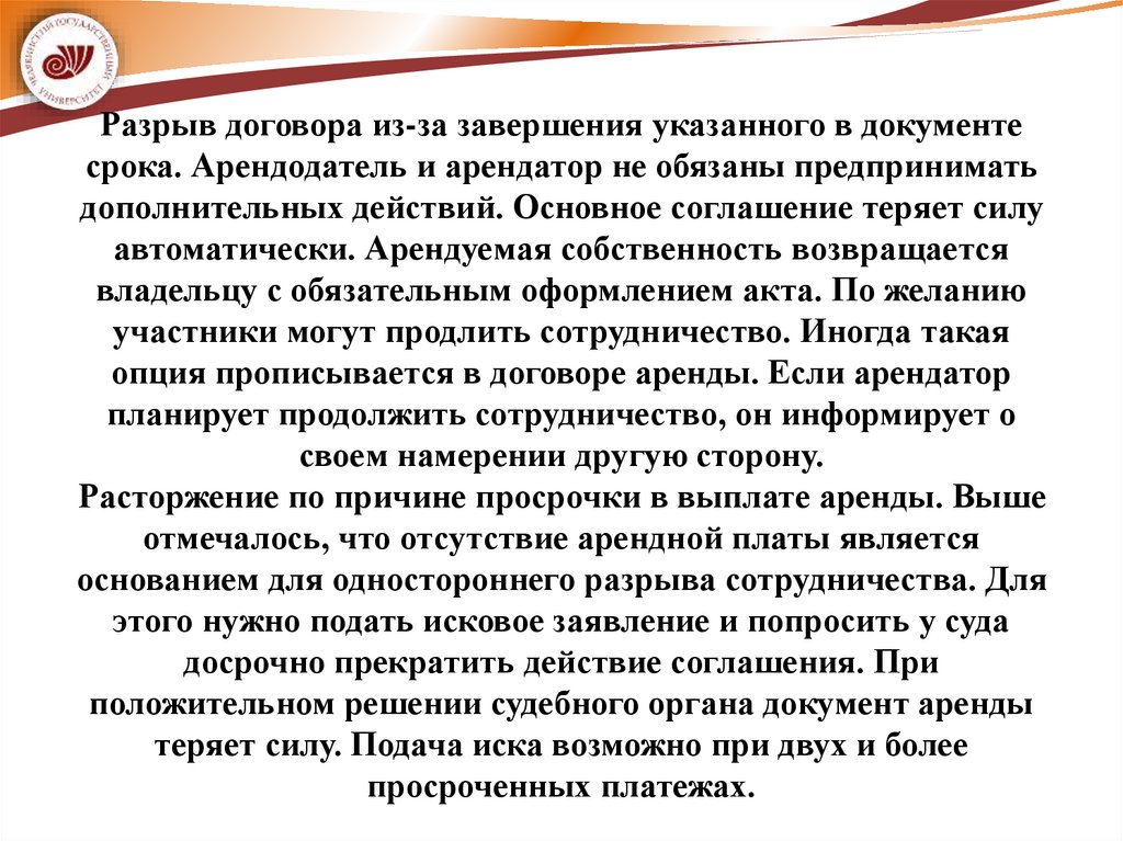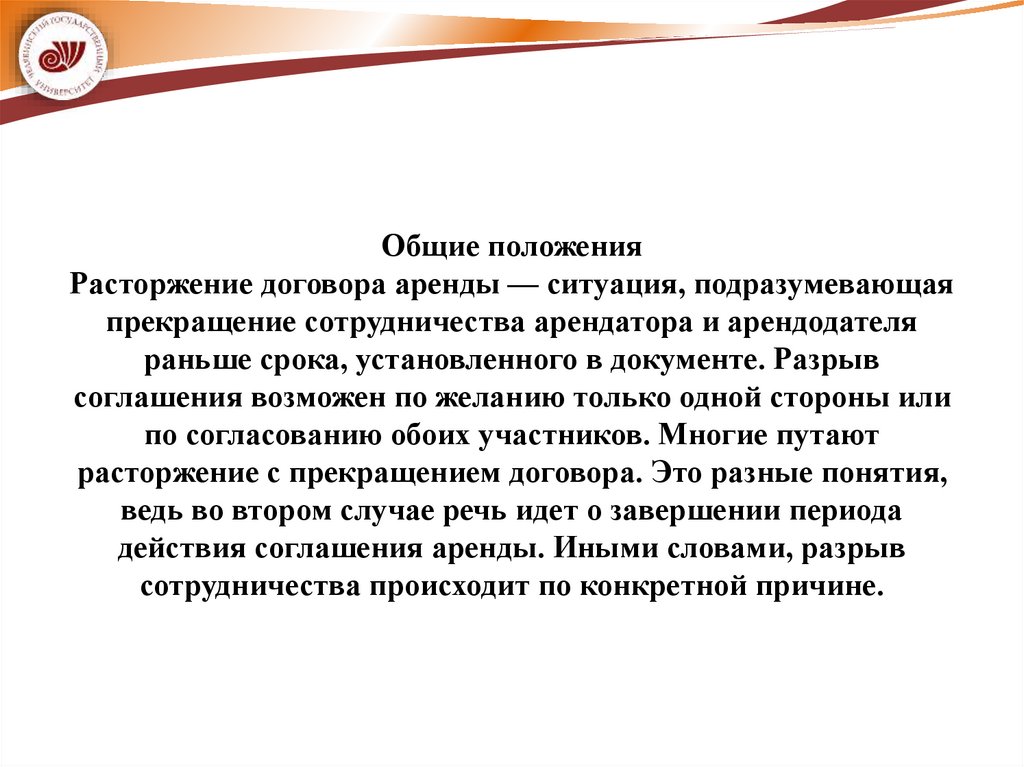 19. Общие положения Расторжение договора аренды — ситуация, подразумевающая прекращение сотрудничества арендатора и арендодателя