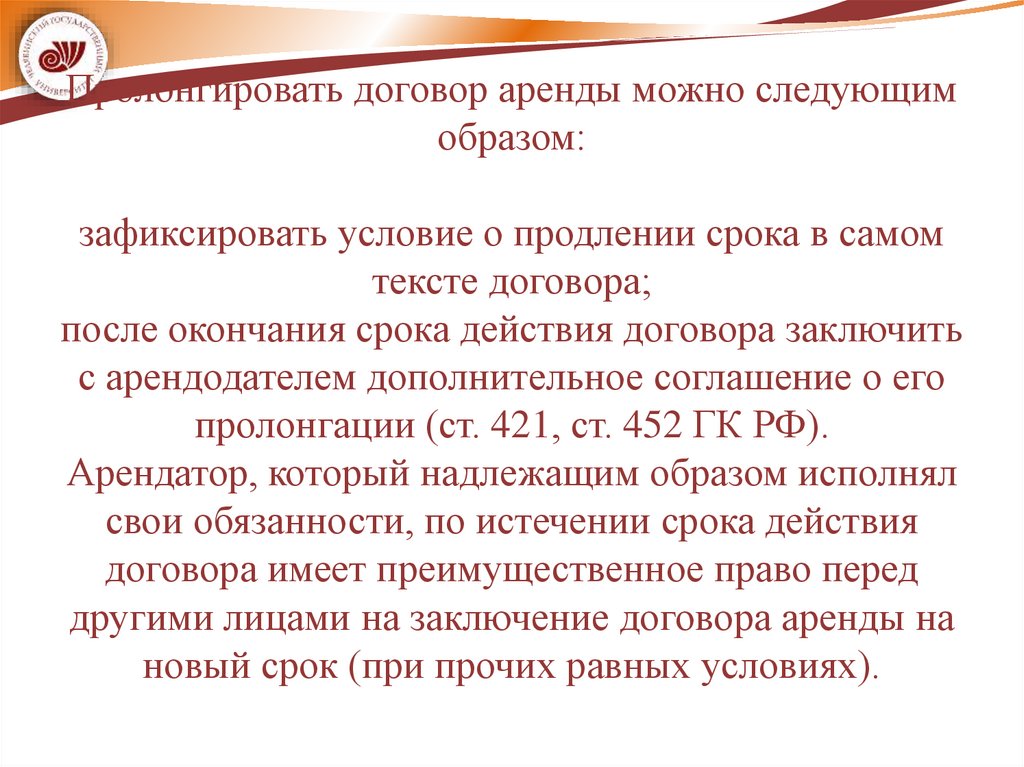 пролонгации (ст. 421, ст. 452 ГК РФ).