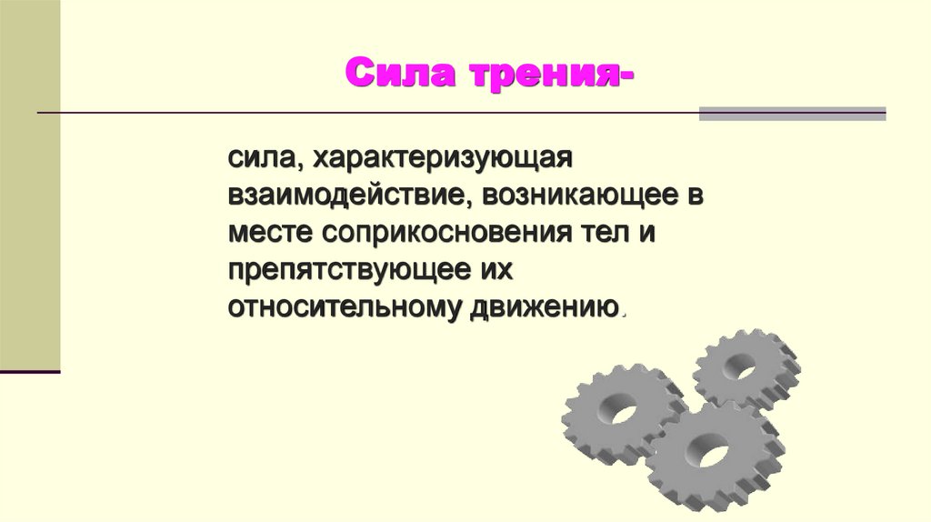 Сила трениясила, характеризующаявзаимодействие, возникающее в