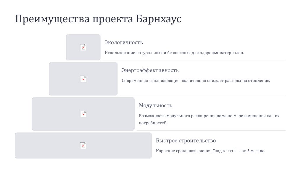Простая и функциональная архитектура барнхаусов значительно сокращает сроки строительства.