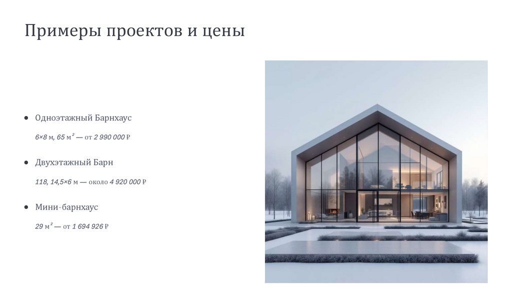 Примеры проектов и ценыОдноэтажный Барнхаус