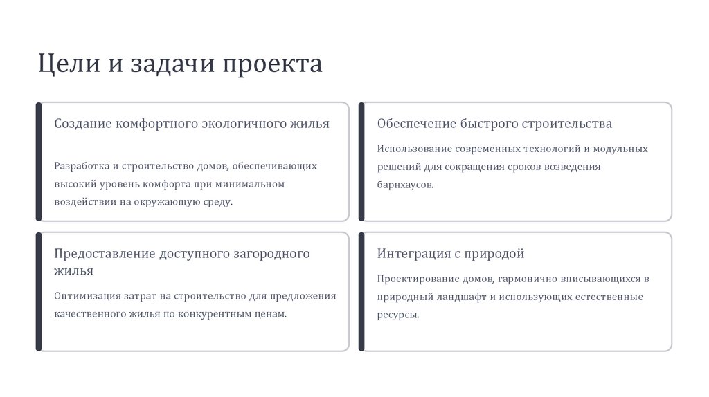 Цели и задачи проектаСоздание комфортного экологичного жилья