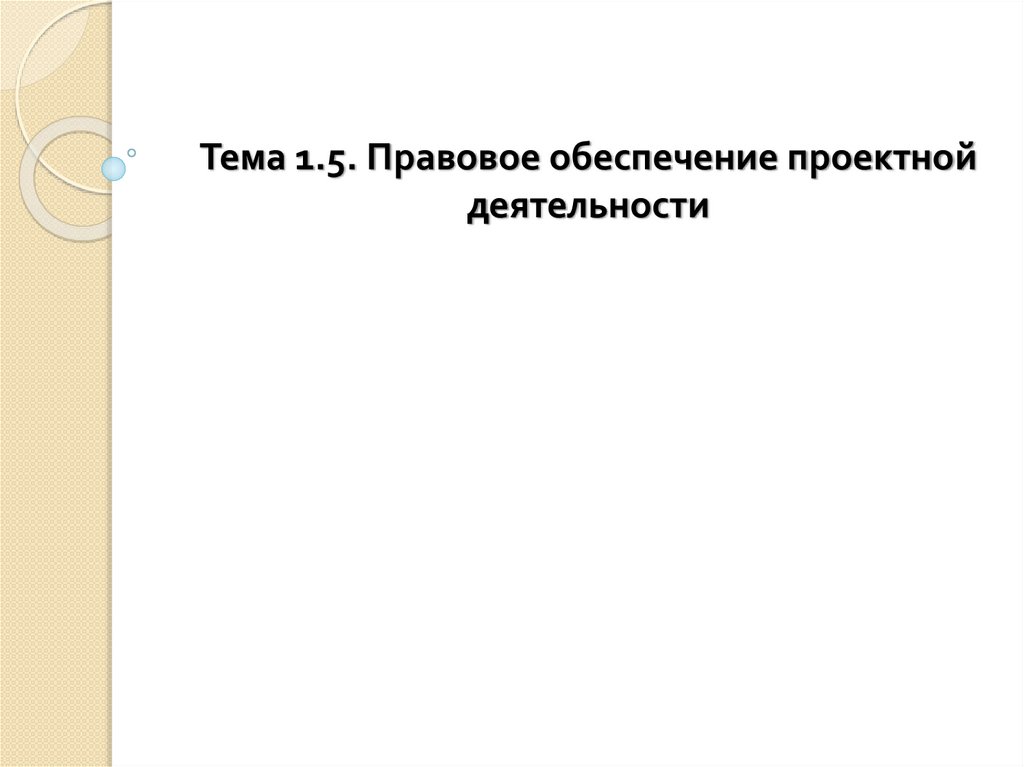 Тема 1.5. Правовое обеспечение проектнойдеятельности