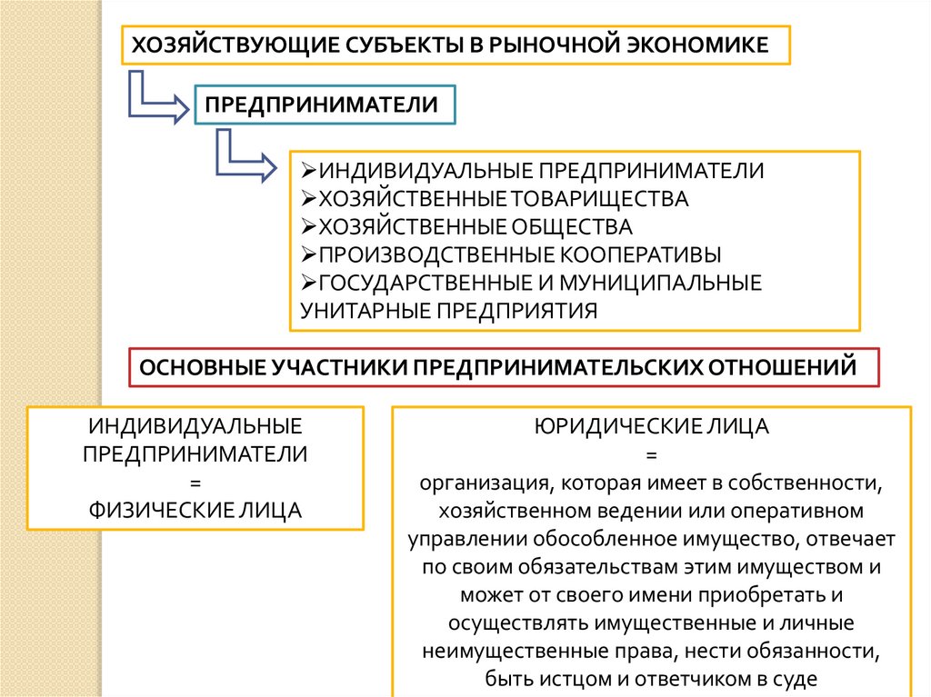 ОСНОВНЫЕ УЧАСТНИКИ ПРЕДПРИНИМАТЕЛЬСКИХ ОТНОШЕНИЙ