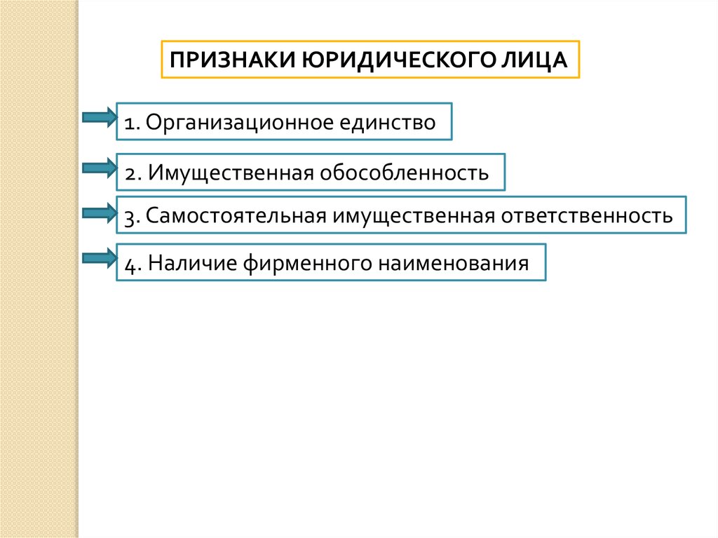 ПРИЗНАКИ ЮРИДИЧЕСКОГО ЛИЦА1. Организационное единство