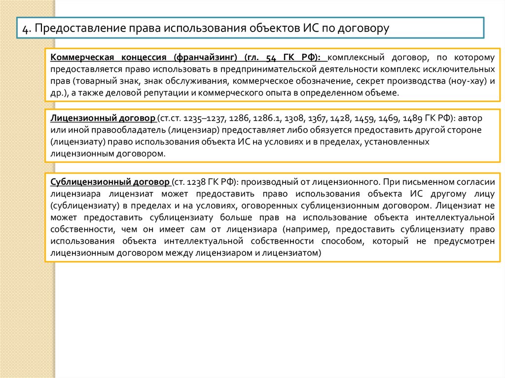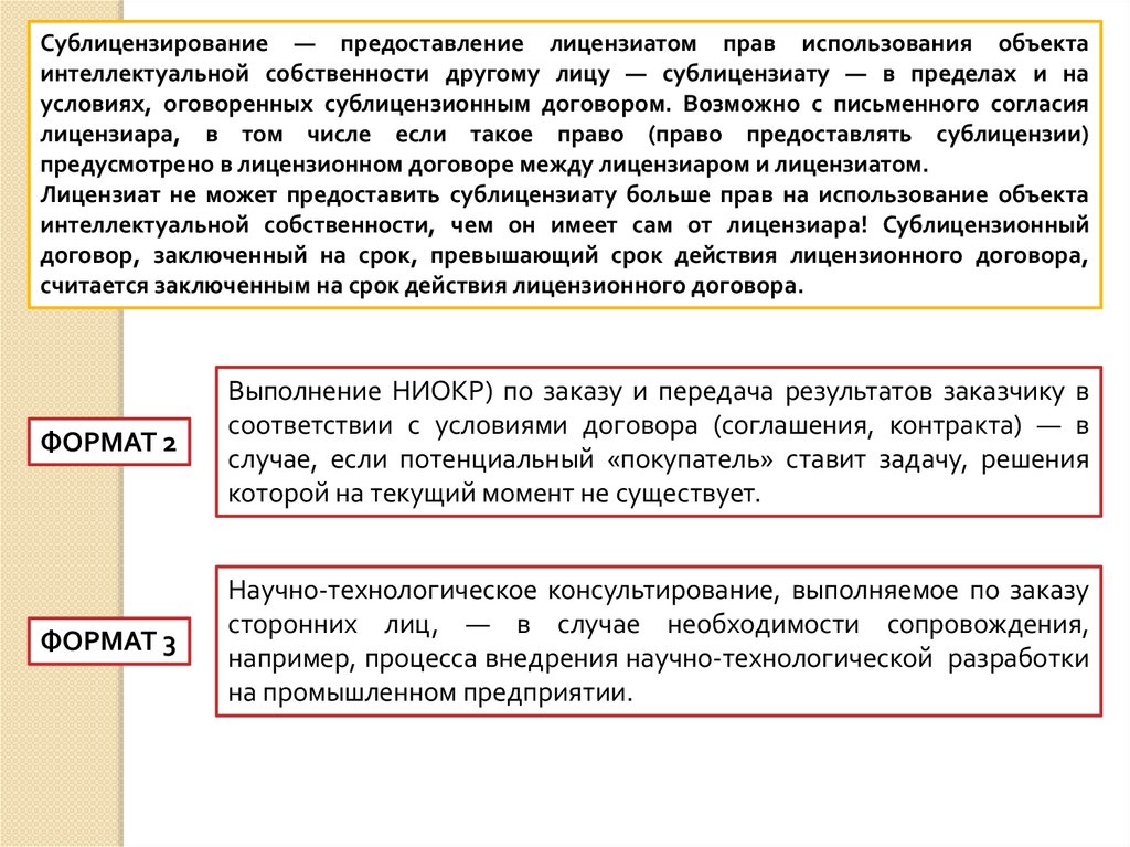 Сублицензии — лицензионные договоры, по которым лицензиат может
