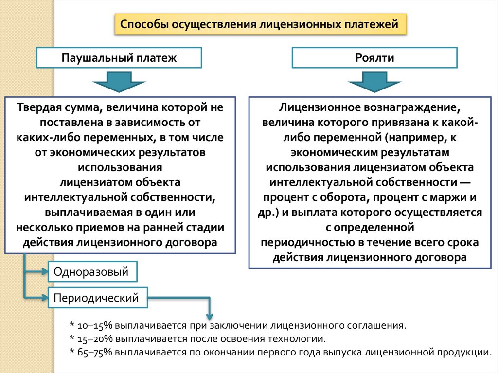 * 10–15% выплачивается при заключении лицензионного соглашения.