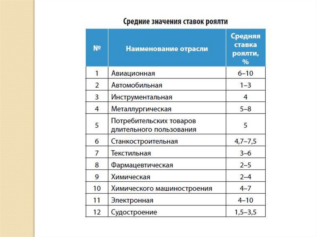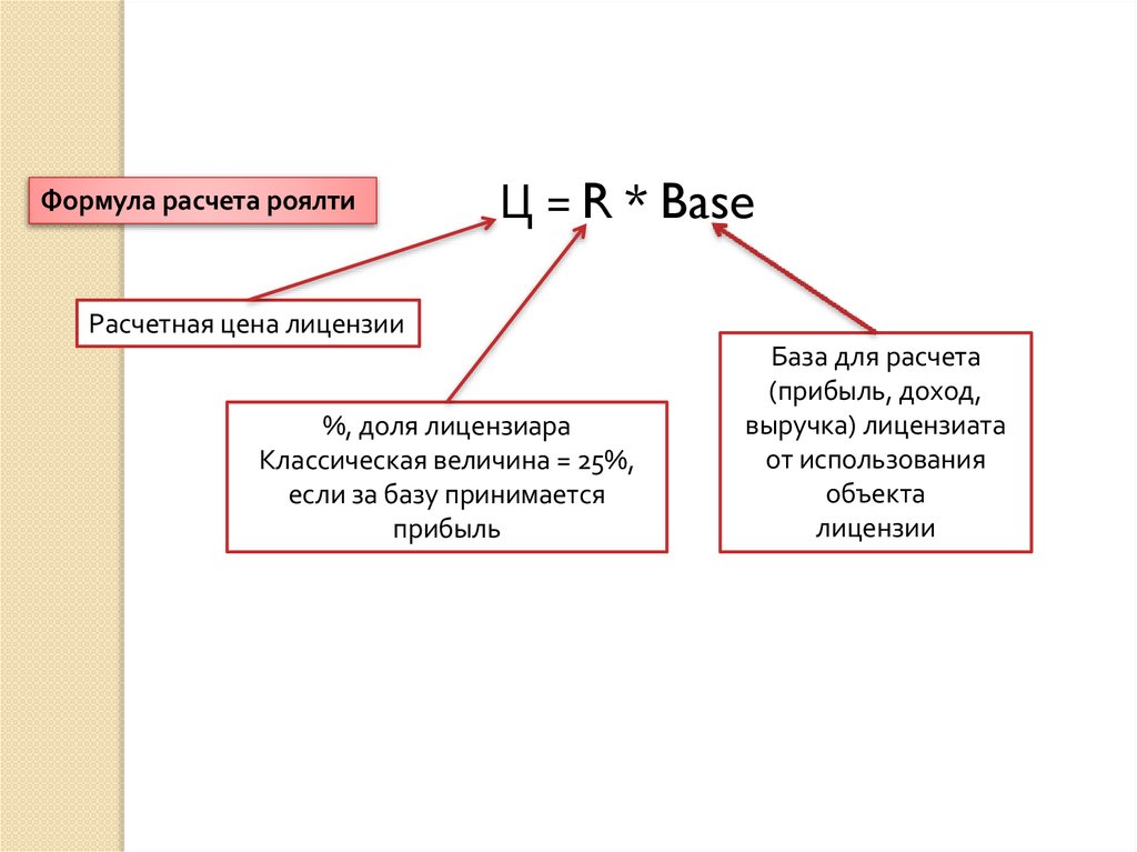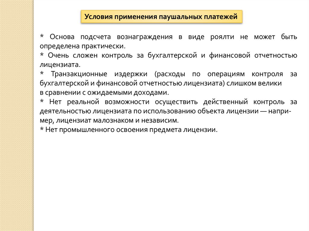 Условия применения паушальных платежей* Основа подсчета вознаграждения в виде роялти не может быть