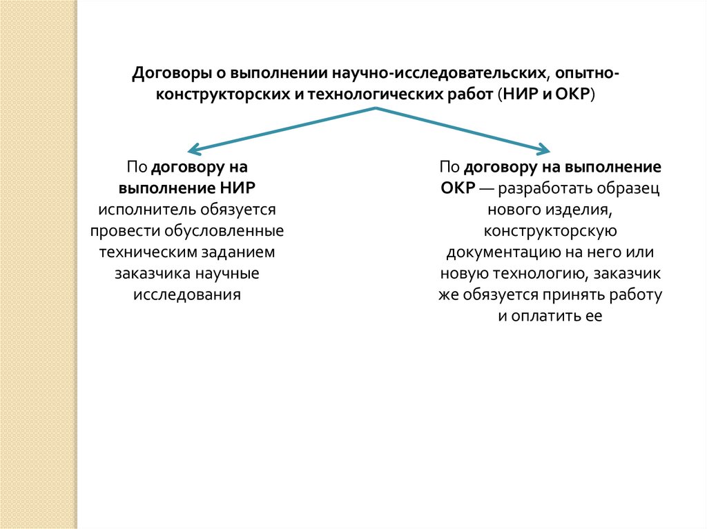 Договоры о выполнении научно-исследовательских, опытноконструкторских и технологических работ (НИР и ОКР)По договору на