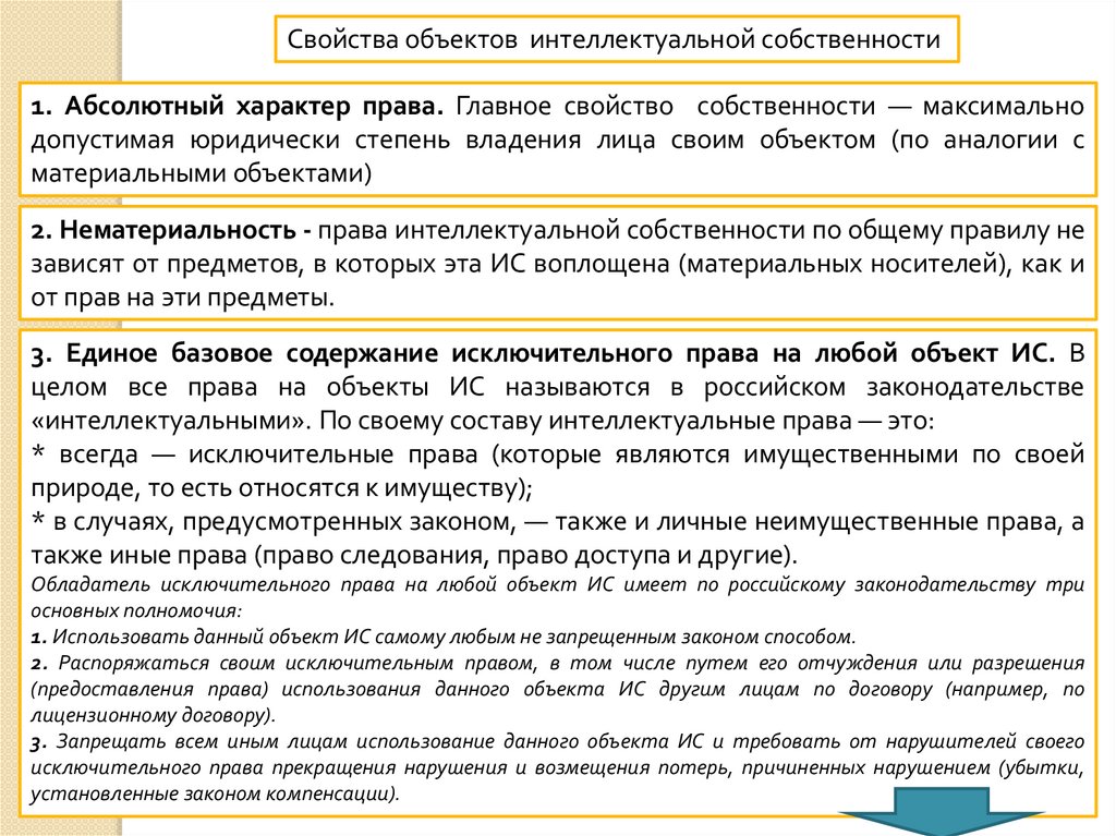 Свойства объектов интеллектуальной собственности1. Абсолютный характер права. Главное свойство собственности — максимально