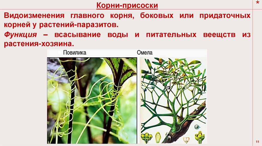корней у растений-паразитов.