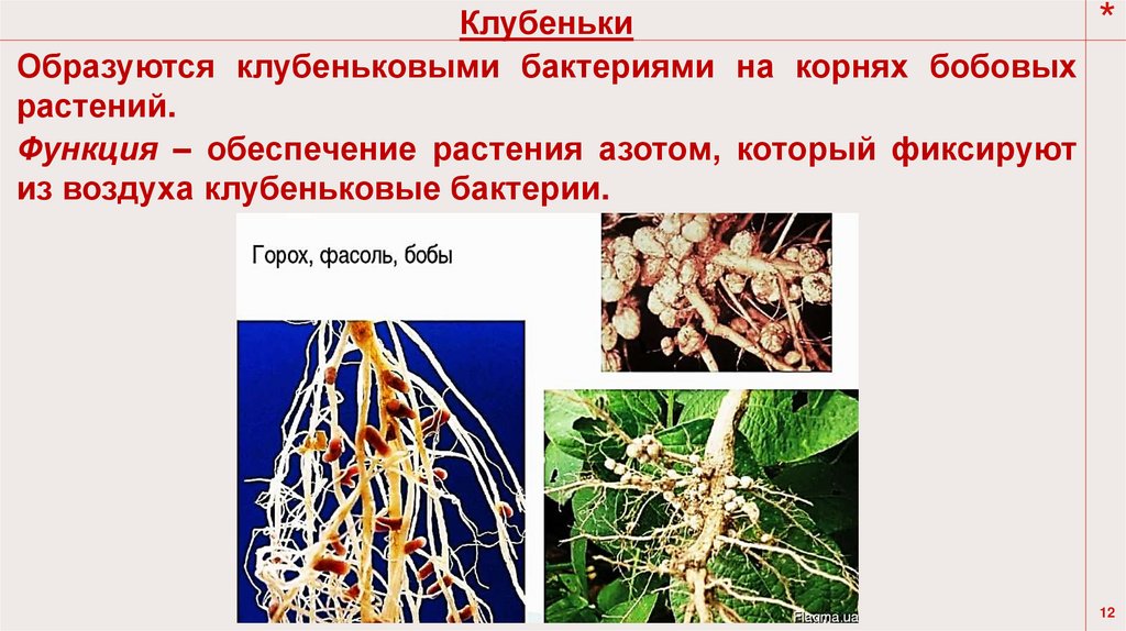Образуются клубеньковыми бактериями на корнях бобовых