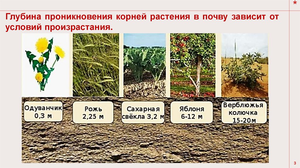 Глубина проникновения корней растения в почву зависит отусловий произрастания.