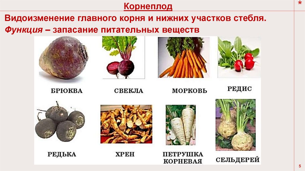 Видоизменения главного корня, боковых или придаточных