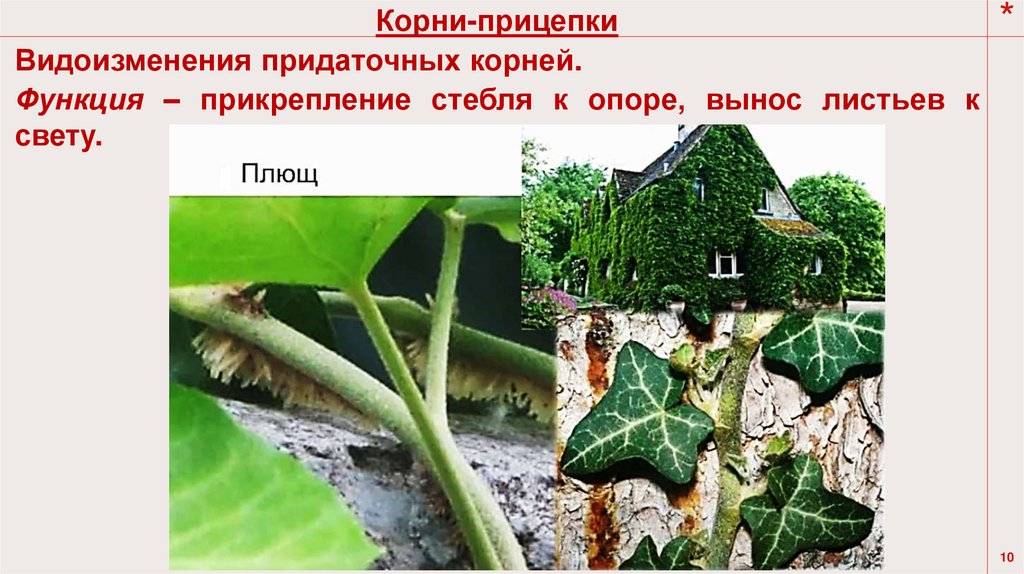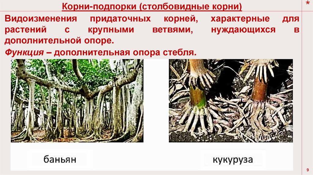 Видоизменения придаточных корней, характерные для