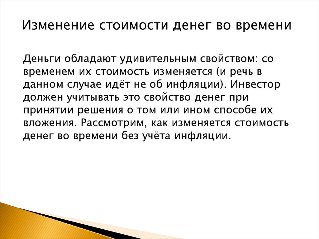 Изменение стоимости денег во времениДеньги обладают удивительным свойством: со