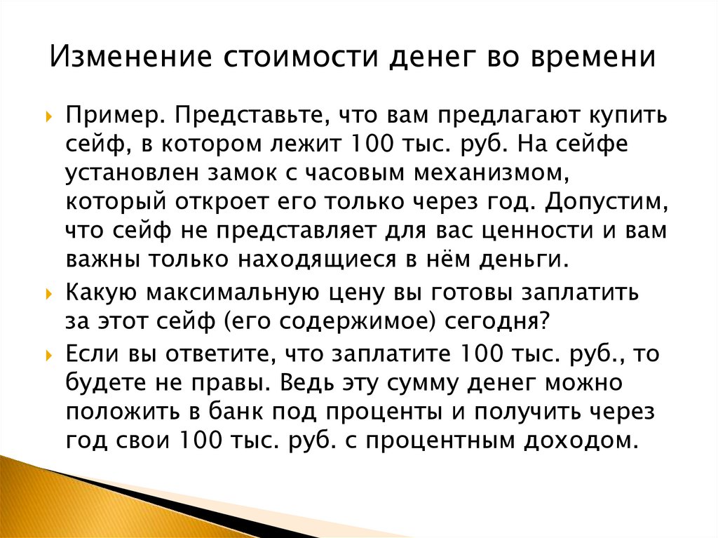 Изменение стоимости денег во времениА если вам предложат купить сейф, в котором пять