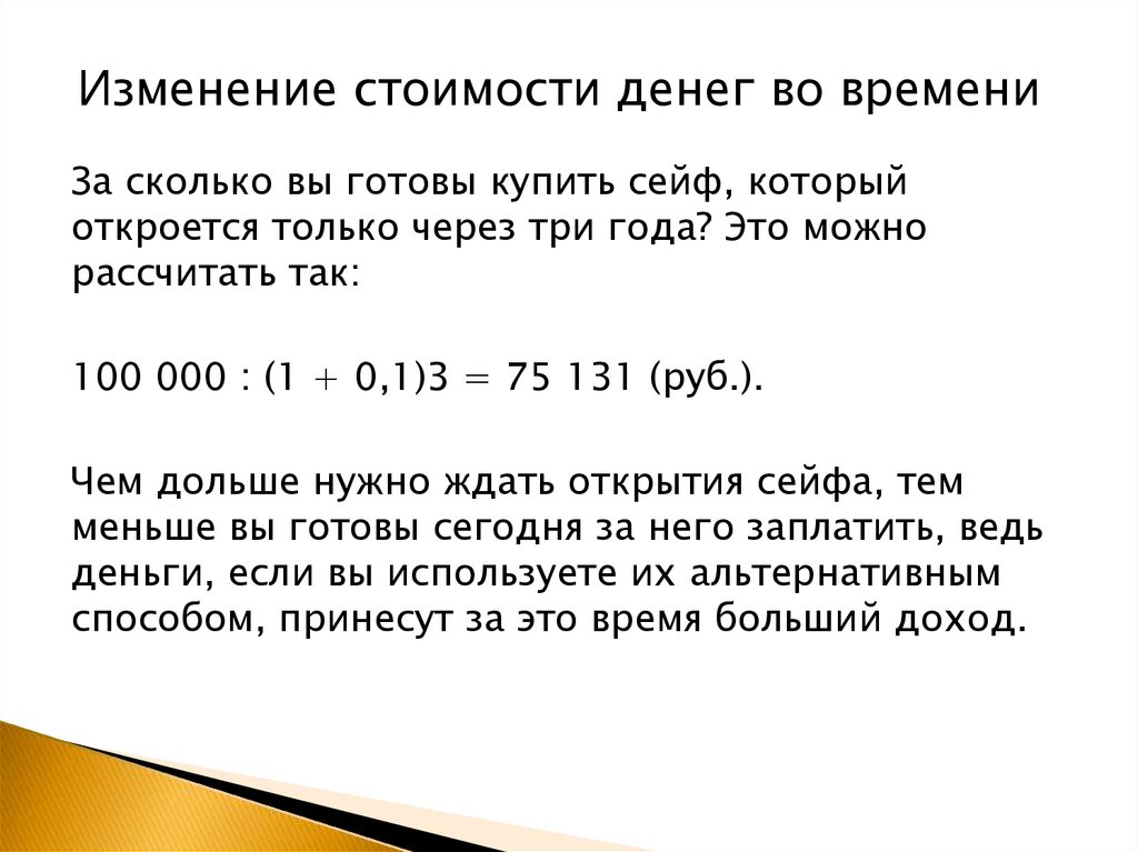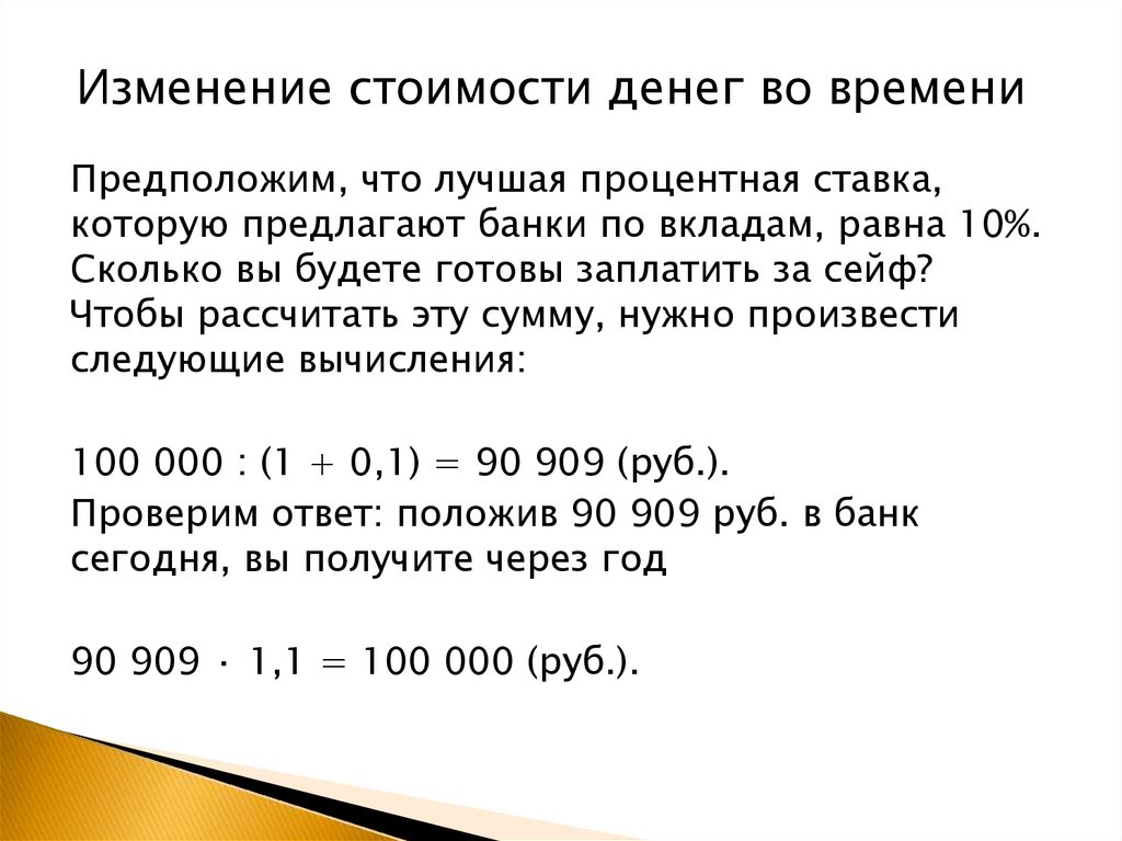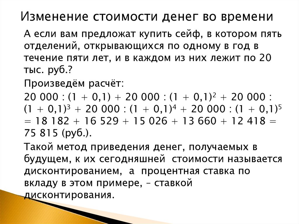 Изменение стоимости денег во времениПример. Представьте, что вам предлагают купить