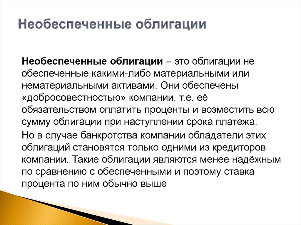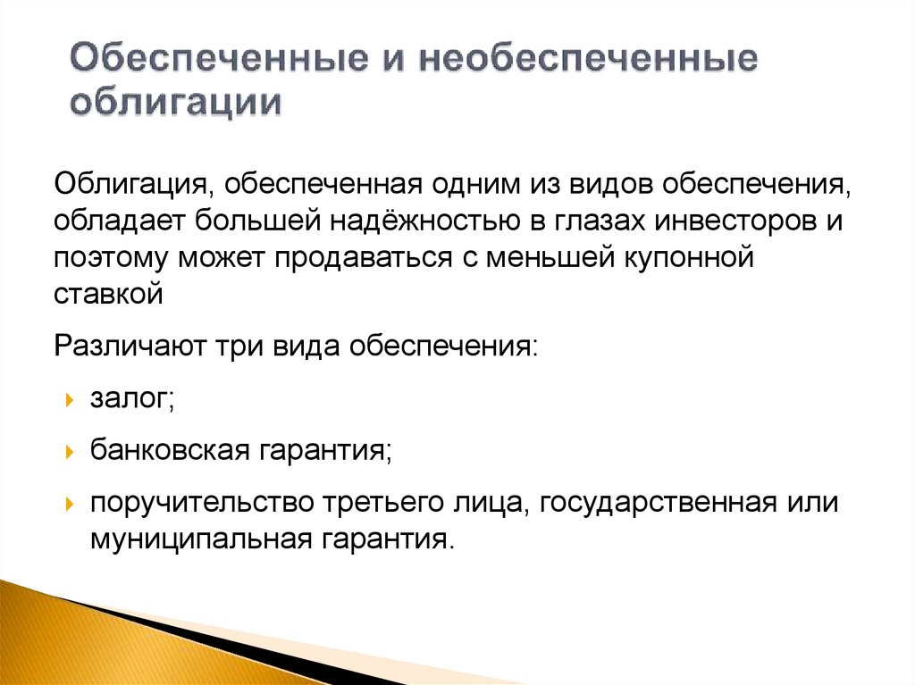 Облигация, обеспеченная одним из видов обеспечения,обладает большей надёжностью в глазах инвесторов и