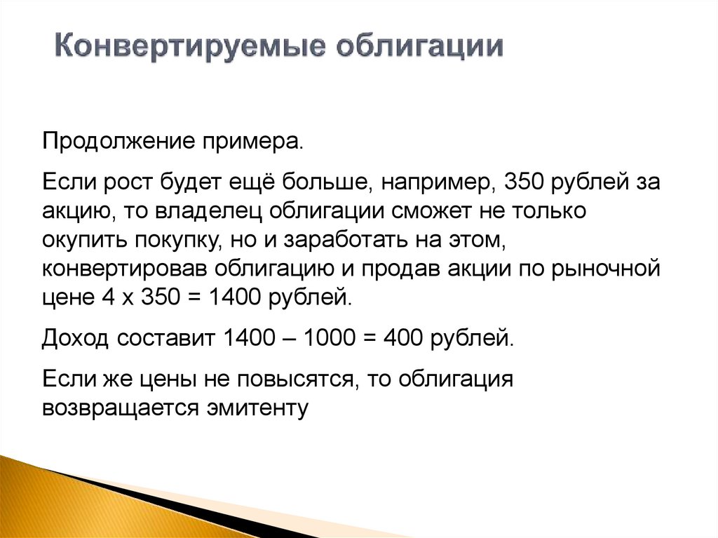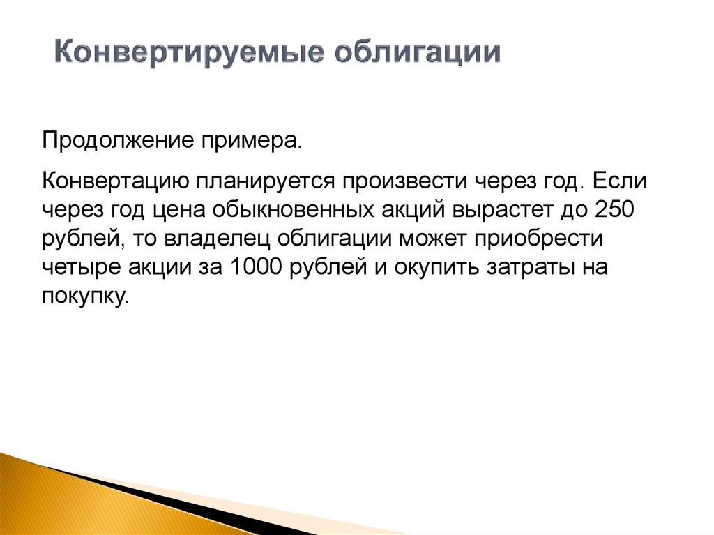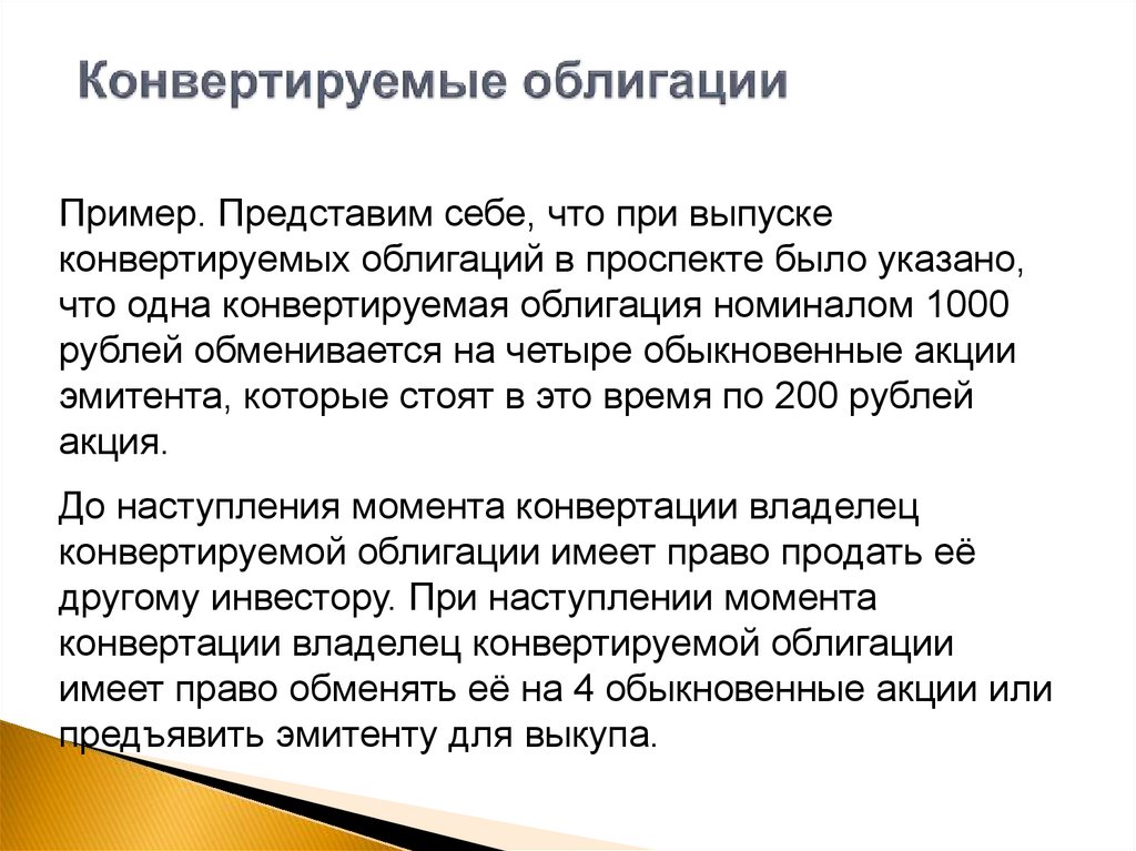 Пример. Представим себе, что при выпускеконвертируемых облигаций в проспекте было указано,