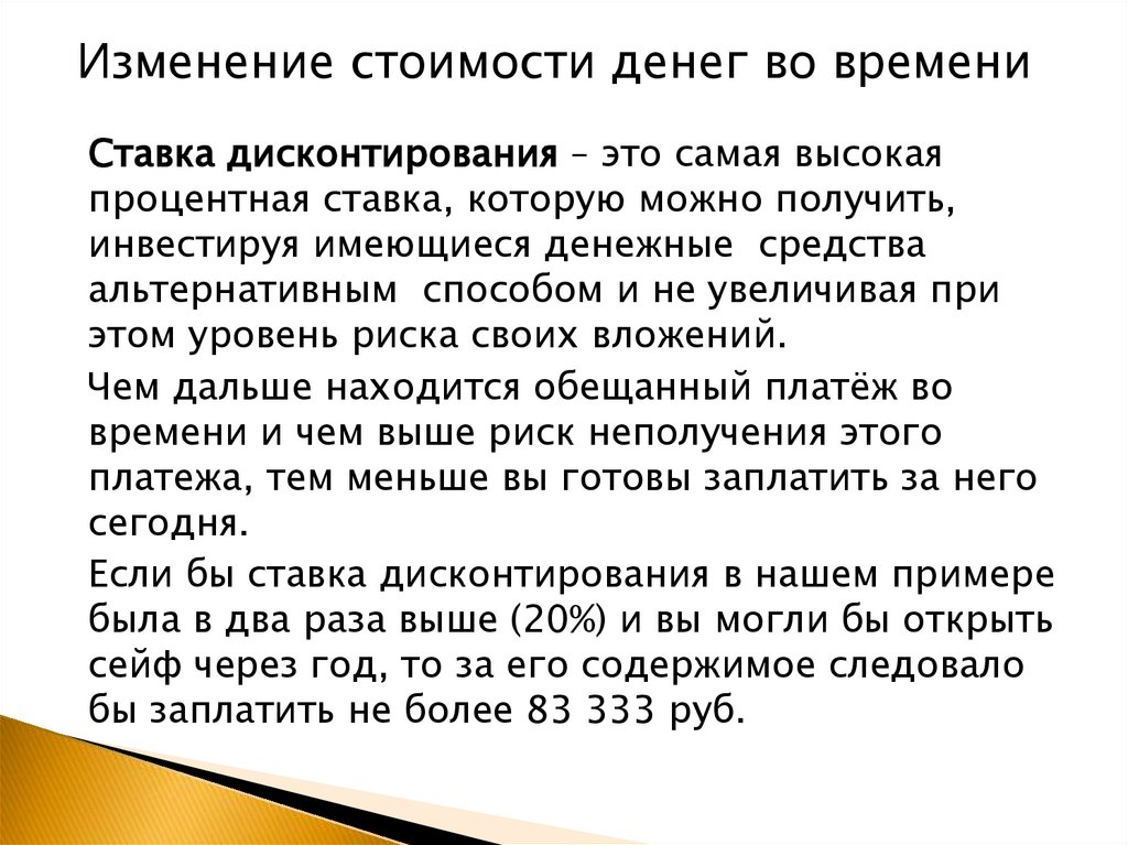 Изменение стоимости денег во времениСтавка дисконтирования – это самая высокая