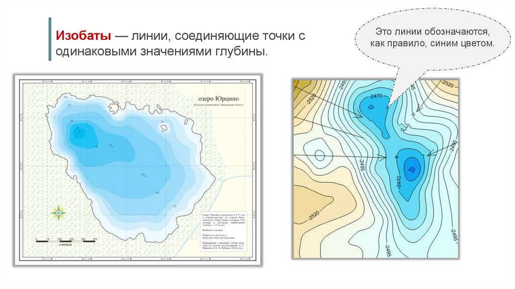 Изобаты — линии, соединяющие точки содинаковыми значениями глубины.