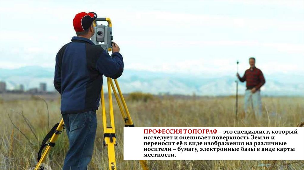 ПРОФЕССИЯ ТОПОГРАФ – это специалист, которыйисследует и оценивает поверхность Земли и