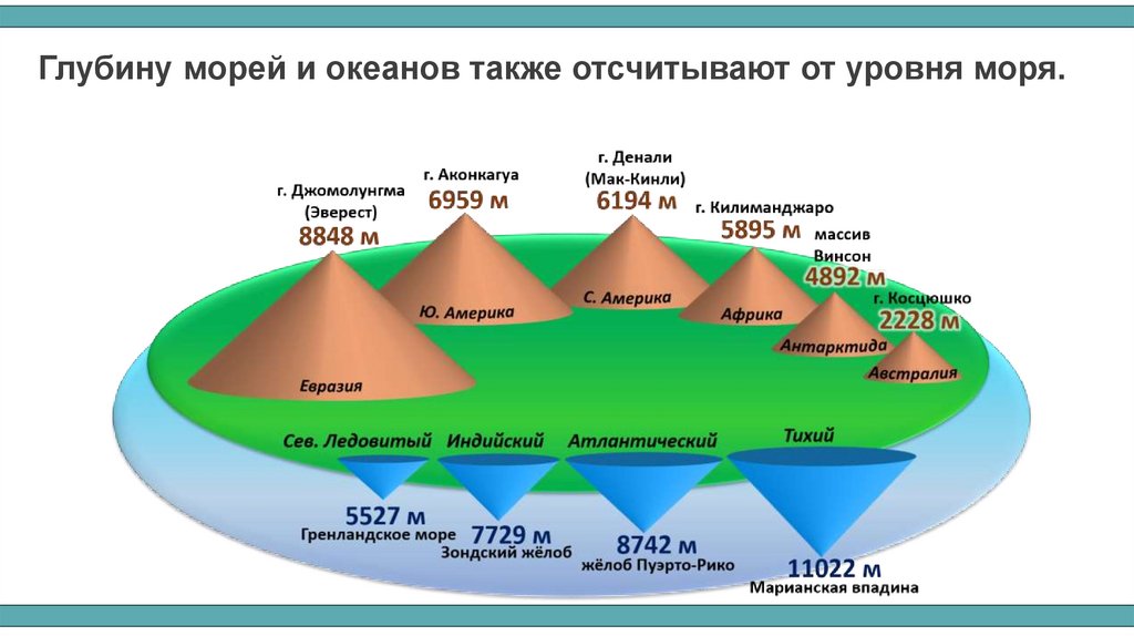 Глубину морей и океанов также отсчитывают от уровня моря.6.