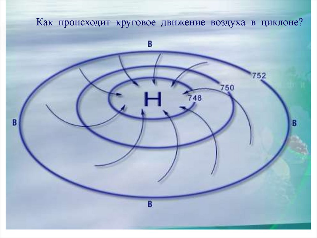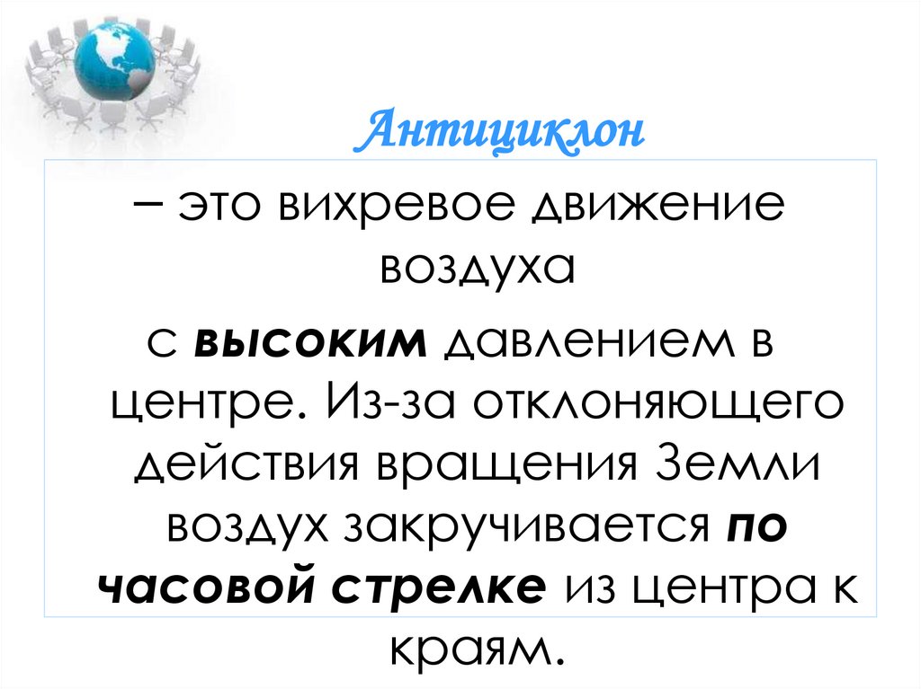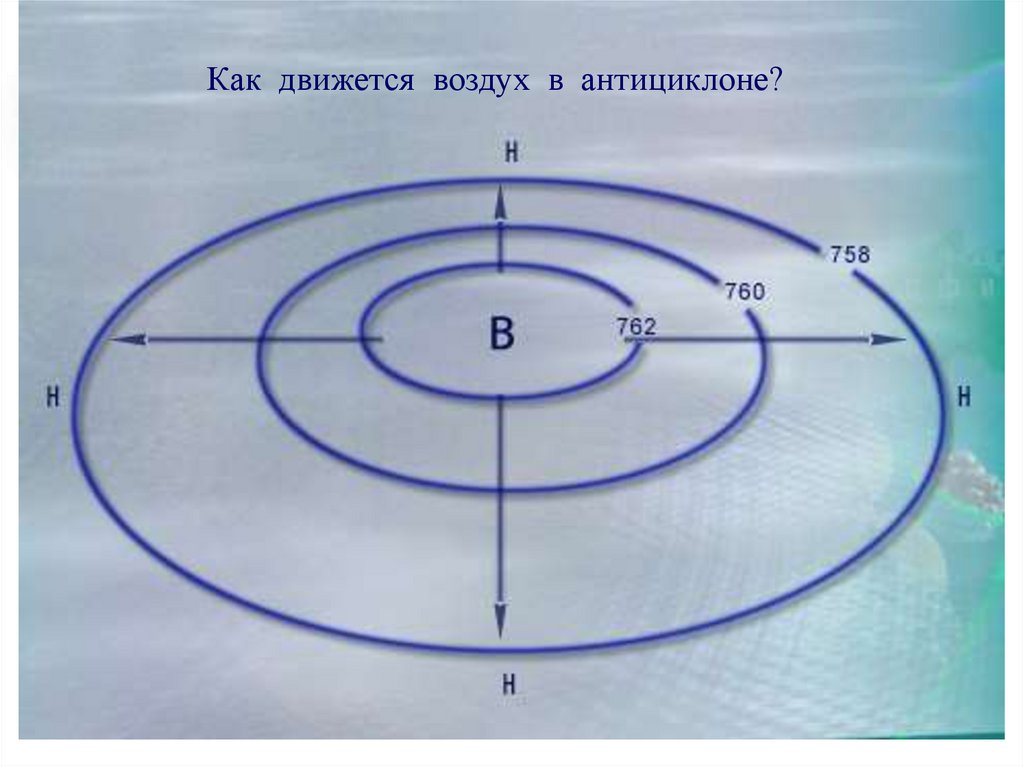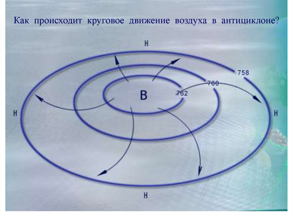 Как происходит круговое движение воздуха в антициклоне?АНТИЦИКЛОНЫ