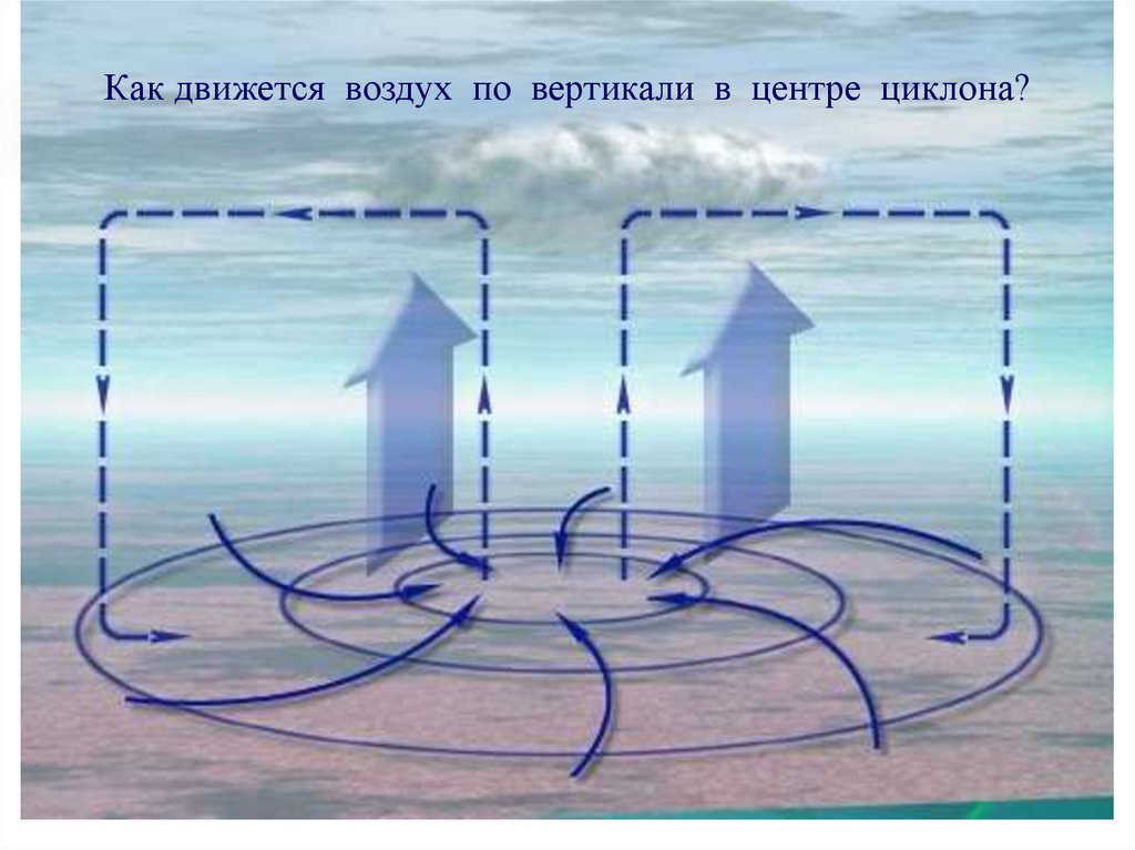 Как движется воздух по вертикали в центре циклона?ЦИКЛОНЫ