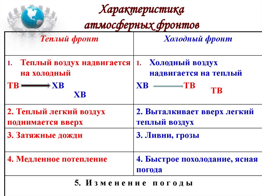Борьба тёплого воздуха с холодным6. Характеристика атмосферных фронтов