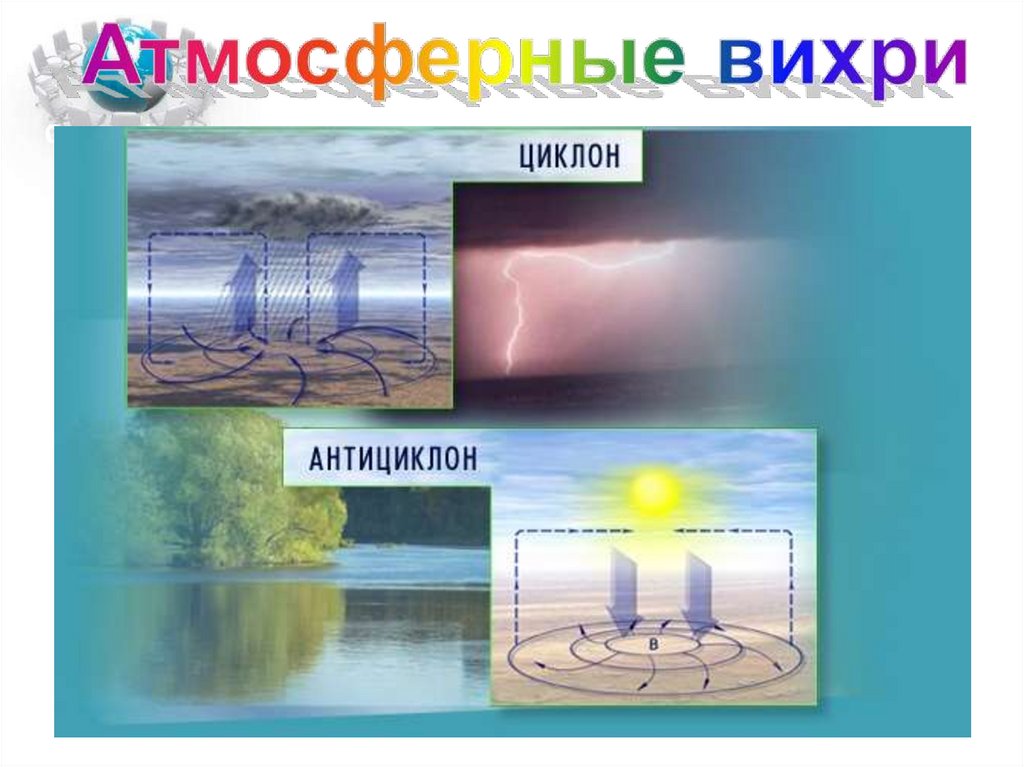 С атмосферными фронтами связано развитие циклонов и антициклонов.9.