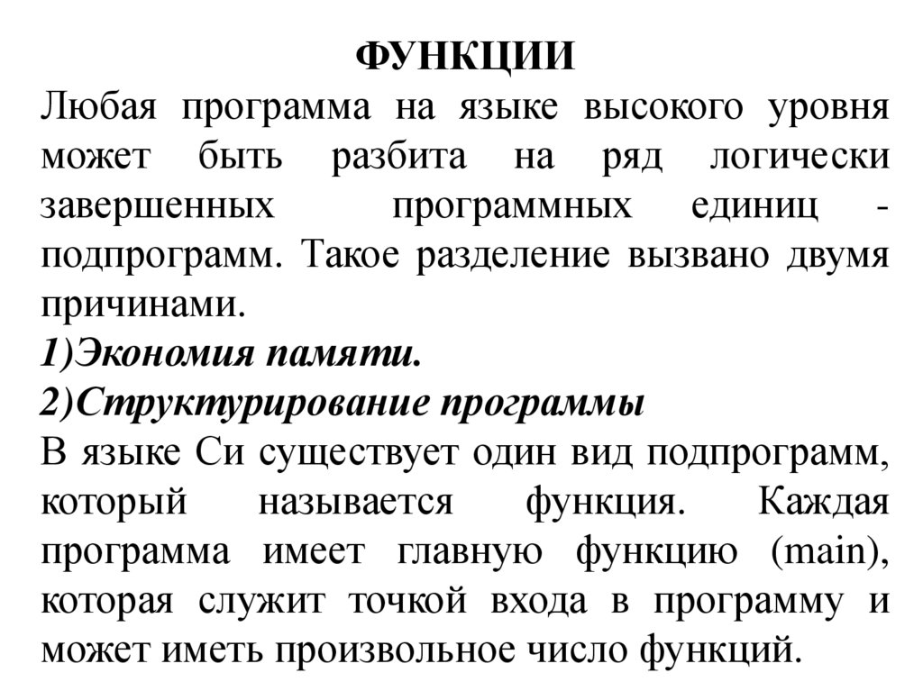 ФУНКЦИИЛюбая программа на языке высокого уровня