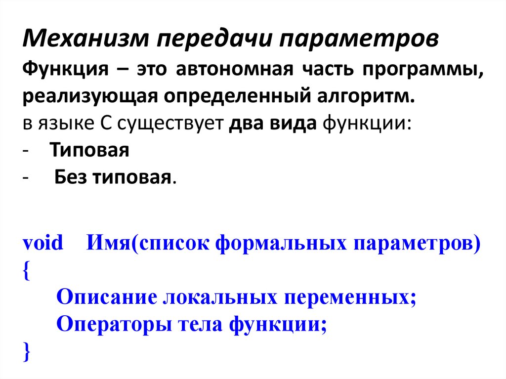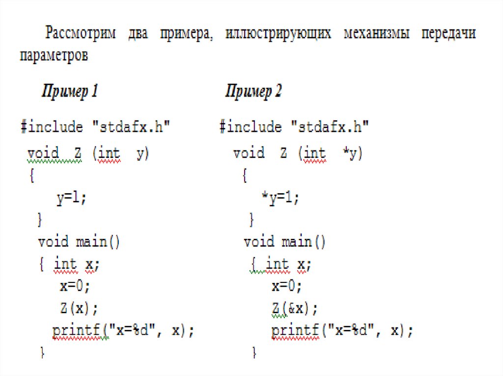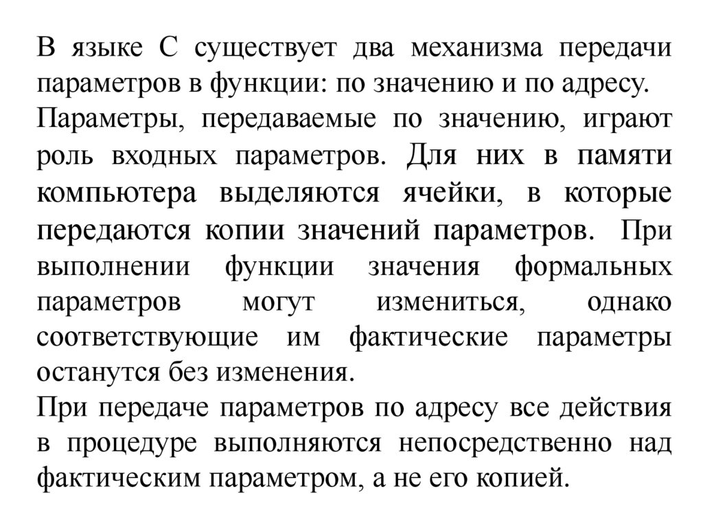 В языке С существует два механизма передачипараметров в функции: по значению и по адресу.