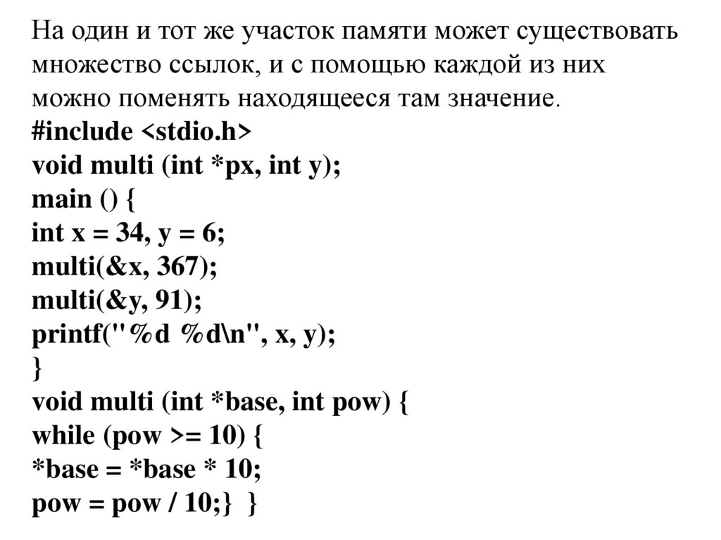 На один и тот же участок памяти может существоватьмножество ссылок, и с помощью каждой из них