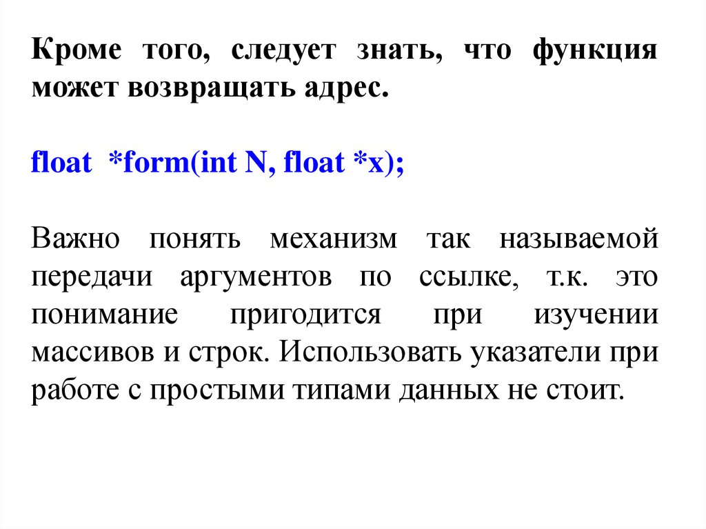Кроме того, следует знать, что функцияможет возвращать адрес.