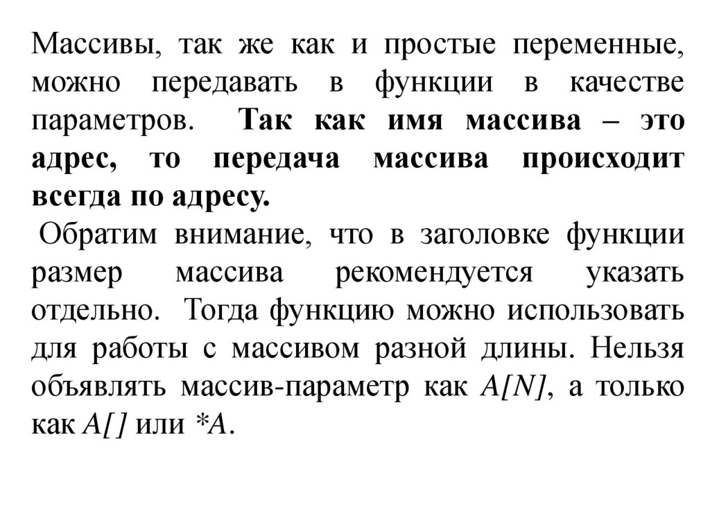 Массивы, так же как и простые переменные,можно передавать в функции в качестве