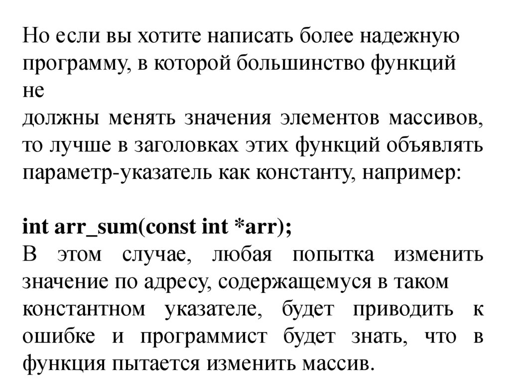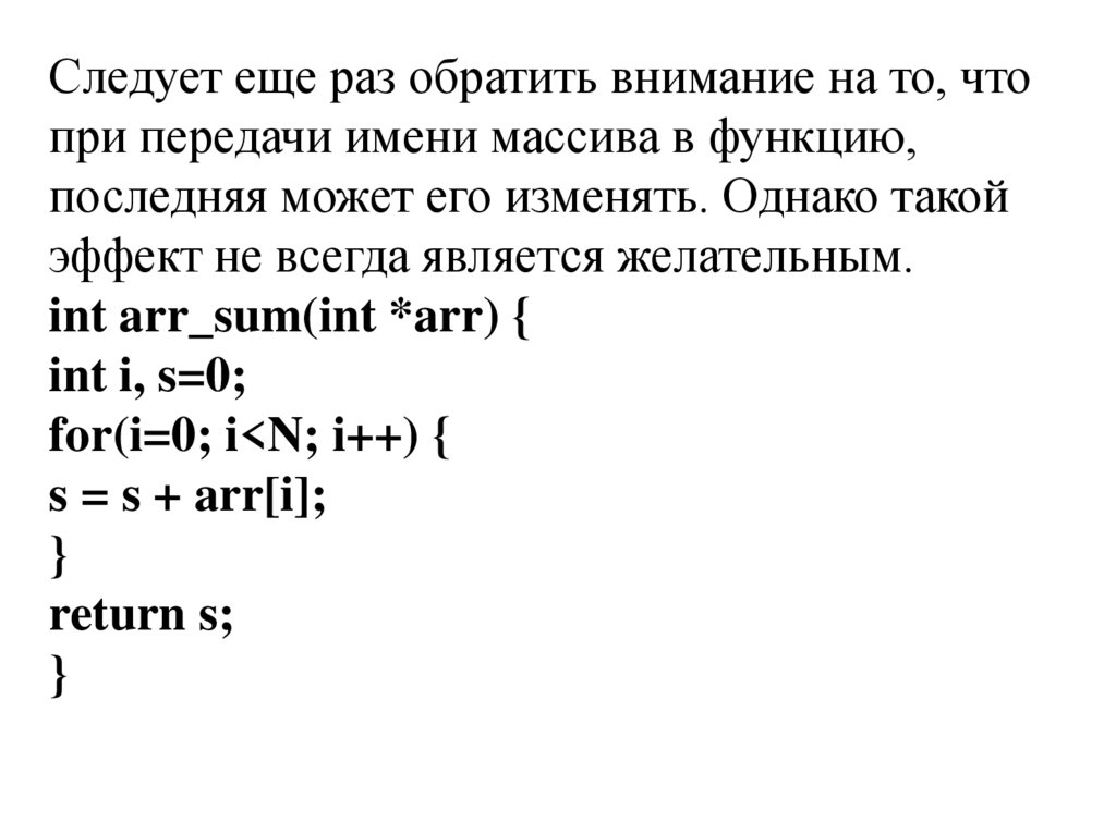 Следует еще раз обратить внимание на то, чтопри передачи имени массива в функцию,