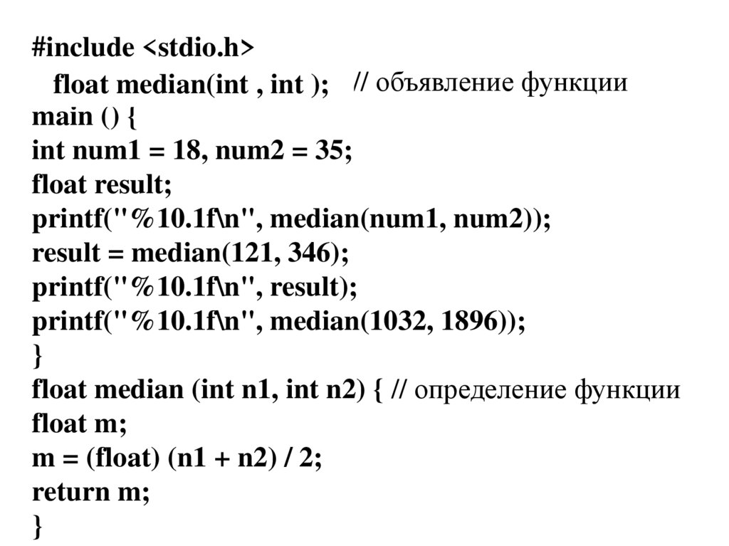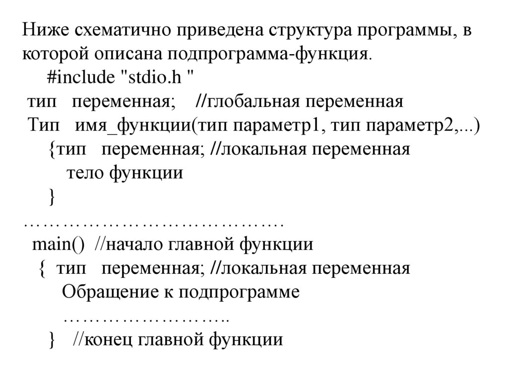 Ниже схематично приведена структура программы, вкоторой описана подпрограмма-функция.