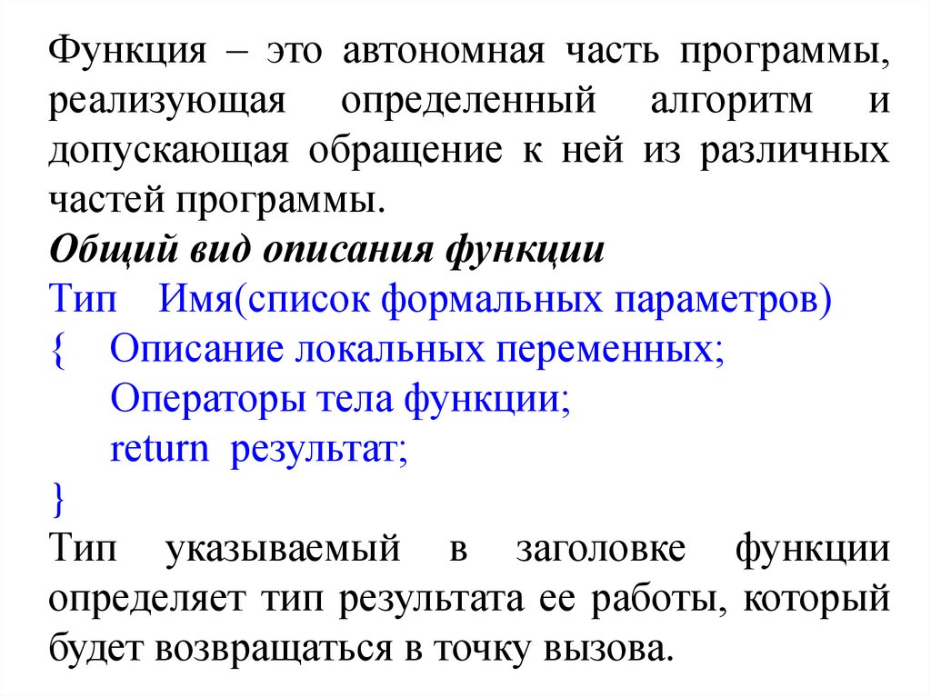 Функция – это автономная часть программы,реализующая определенный алгоритм и
