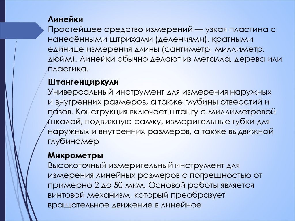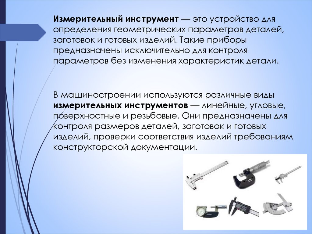 Измерительный инструмент — это устройство дляопределения геометрических параметров деталей,