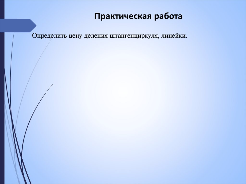 Практическая работаОпределить цену деления штангенциркуля, линейки.