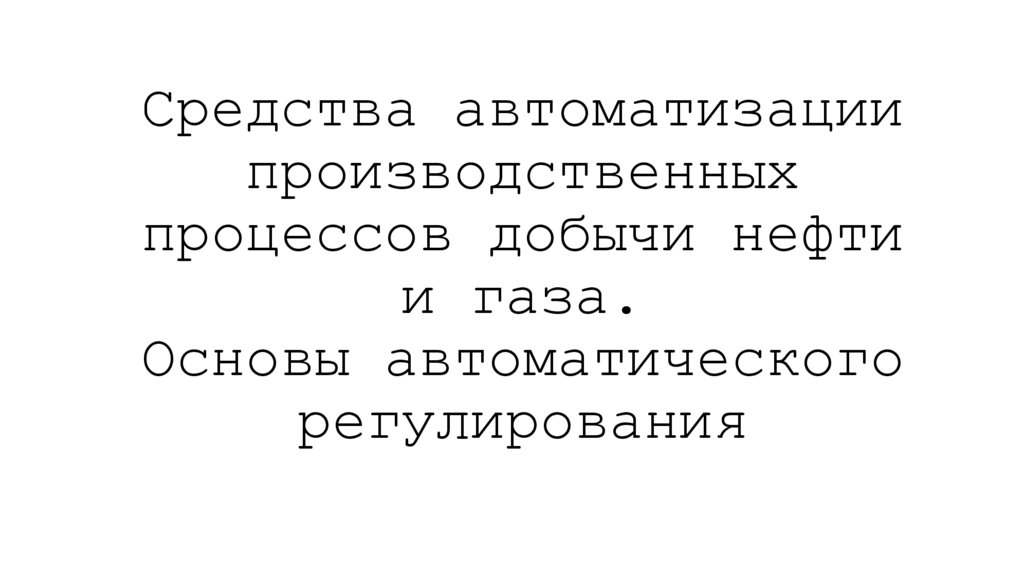 1. Средства автоматизации производственных процессов добычи нефти и газа. Основы автоматического регулирования