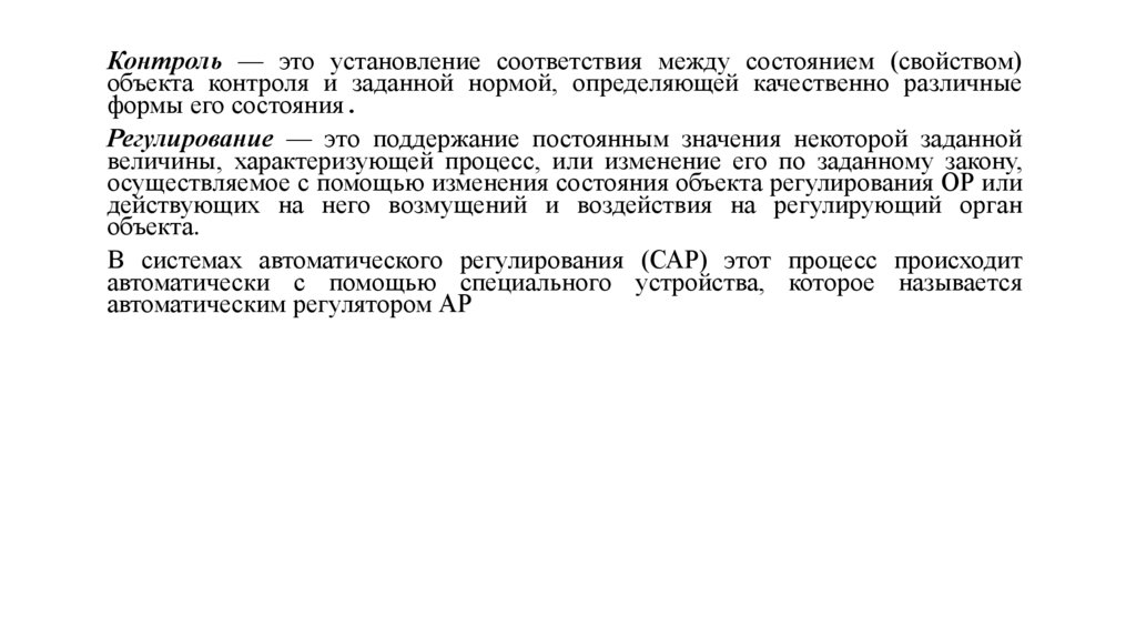 В системах автоматического регулирования (САР) этот процесс происходит