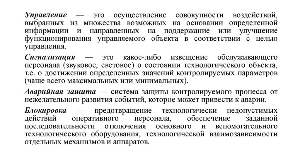 Управление — это осуществление совокупности воздействий,выбранных из множества возможных на основании определенной